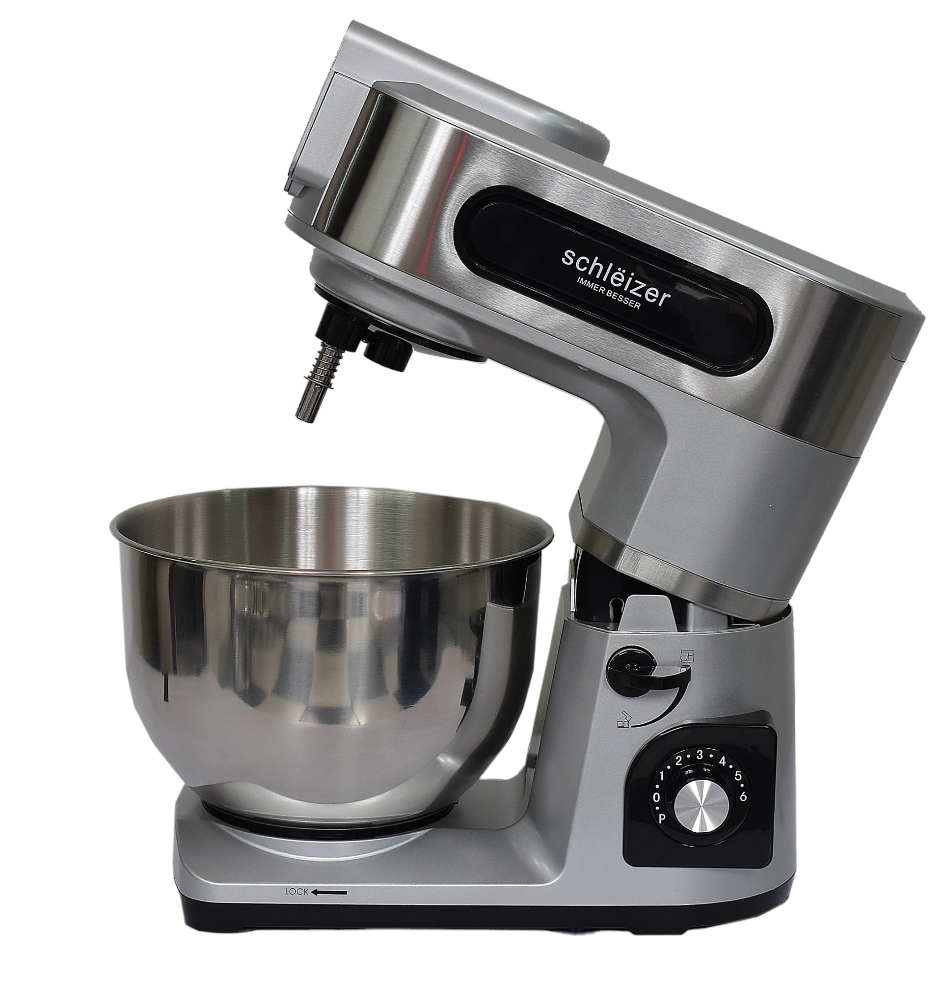 Découvrez le Petrin multifonctions 7L de la marque SCHLEIZER avec un mécanisme d'engrenage spécial robuste pour un pétrissage parfait.